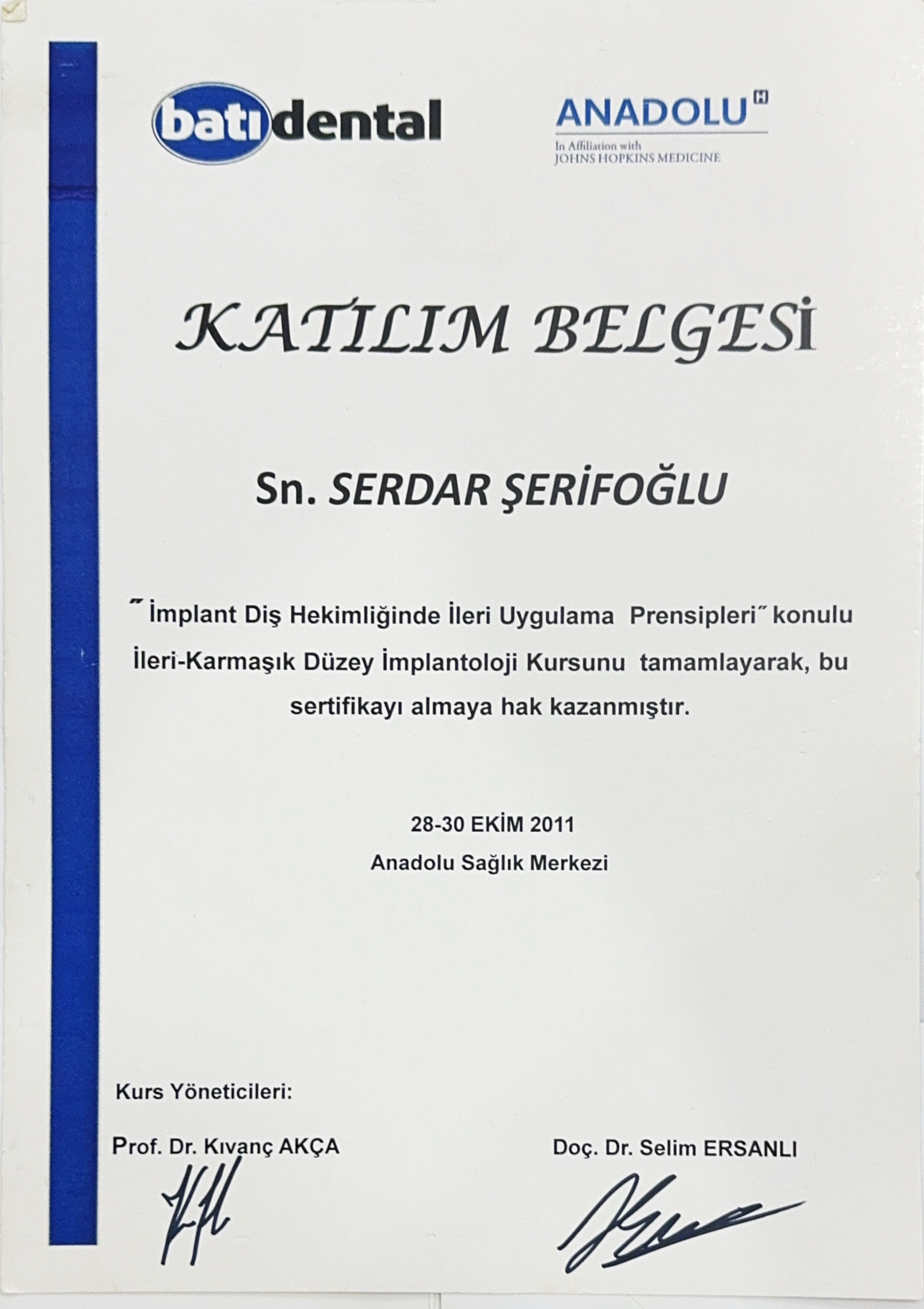 Hekimlerimizden Sayın Diş Hekimi Serdar ŞERİFOĞLU, 1979 yılında Bolu'da doğmuştur.